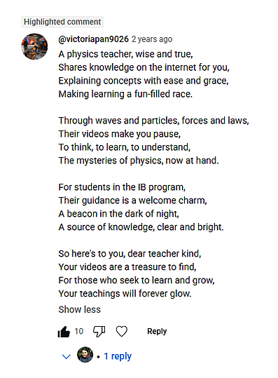 Prof Varun thank you so much for the last 2 years, regardless of how tomorrow goes, if I have learned any physics during the IB it's thanks to you. The GOAT.